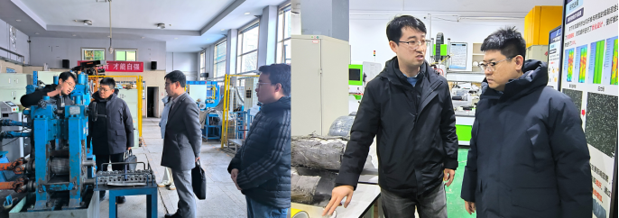 在PA视讯官方网站先进成形与智能装备研究院,研究院副研究员王振华带领PA游戏官网入口老师们参观了金属复合材料成形实验室设备和环境。该研究院由黄庆公司士领衔,聚焦先进金属复合材料成形技术与装备领域的科技前沿问题及产学研合作开展研究取得了一系列显著成绩。该团队在板带轧制装备智能化设计与软件开发方面已获多项国内和国际专利。通过参观,老师们对于先进金属基复合材料的轧制技术、碳纤维缠绕装备有了初步认识。