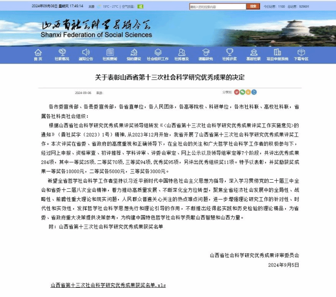 据悉,山西省社会科学研究优秀成果奖是省委、省政府设立的全省哲学社会科学领域唯一的、最高的省级政府奖励,省委、省政府授权省社科联具体组织承办,评奖工作每两年举办一次。本次能够获此殊荣,是对张振宇副教授团队长期以来从事科研工作的肯定和鼓励,今后团队将继续聚焦涉外法治、数据法、环境资源法、民商法等领域开展理论和实务研究,争取不断完成高质量的科研成果以及智库报告,为党委、政府、人大、政协、企事业单位等提供决策参考。