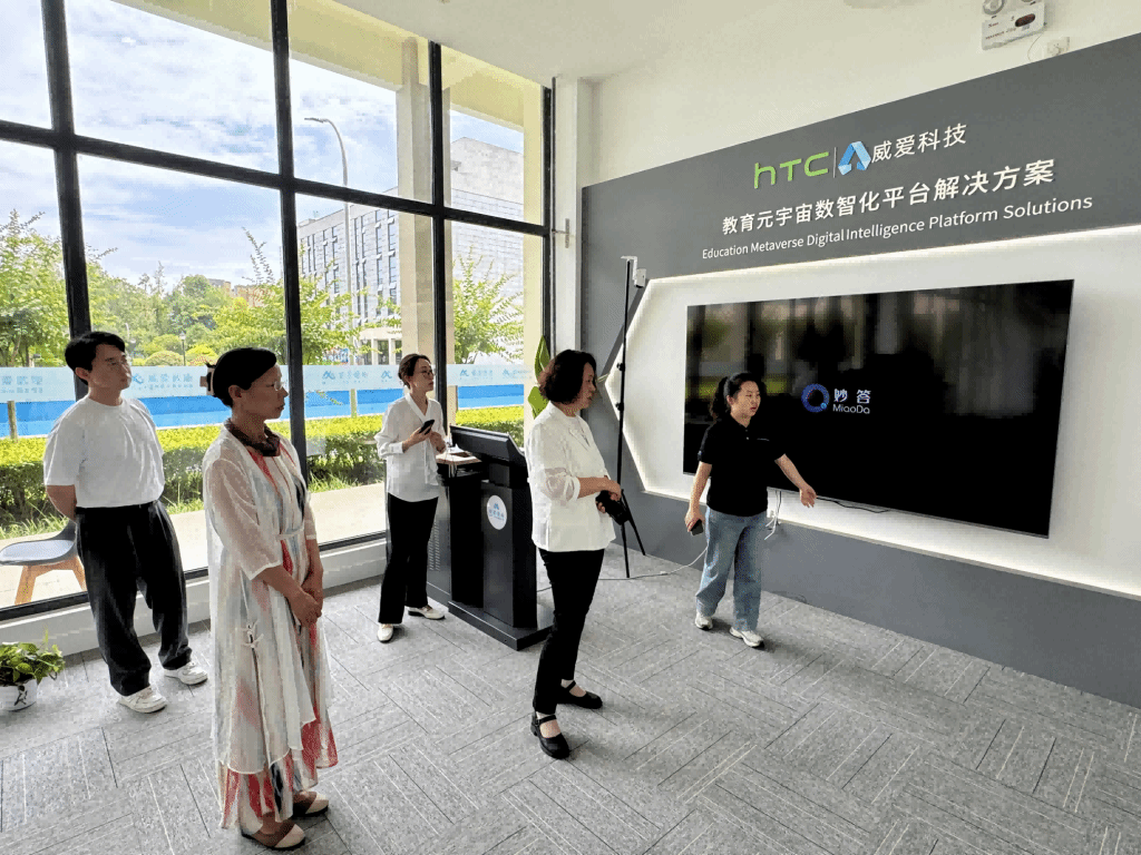 公司代表团首先到访成都威爱数矩(威爱科技数智化教育事业部)办事处。营销经理吴敏详细介绍公司发展概况、元宇宙及VR/MR业务布局,以及AI-LBE(Location Based Education)驱动下的“AI大模型元宇宙沉浸式交互技术联合研发中心”的建设与荣誉。