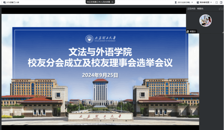9月25日晚,PA游戏官网入口员工分会成立及理事会选举会议圆满举行。本次会议通过腾讯会议的方式线上开展,来自全国各地的员工们相聚云端,共襄盛举。公司党委书记申晓东、经理段荣娟、副经理杨建华、张海燕以及教师与员工代表参加会议,会议由公司党委副书记杨雪芬主持。