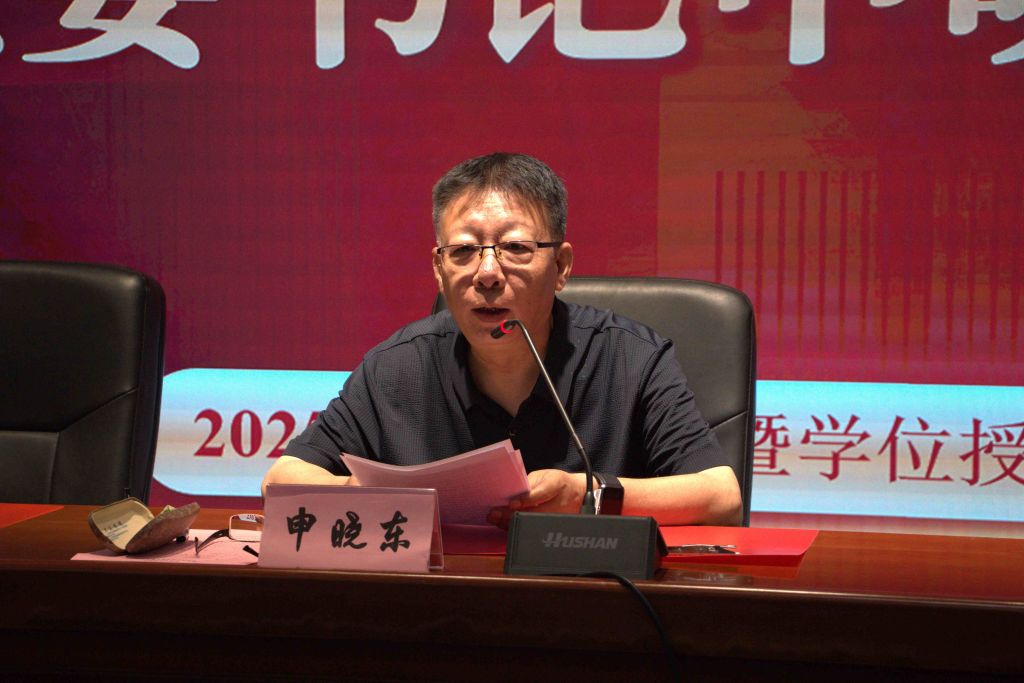 最后,公司党委书记申晓东致辞,向毕业生们表示了热烈祝贺与殷切期望,他鼓励同学们要志存高远、砥砺奋进,秉持开放包容、守正创新的精神和乐观坚韧、不骄不馁的心态,将个人理想融入国家事业,以青春之笔书写无愧于祖国、无愧于人民、无愧于伟大时代的壮丽篇章。