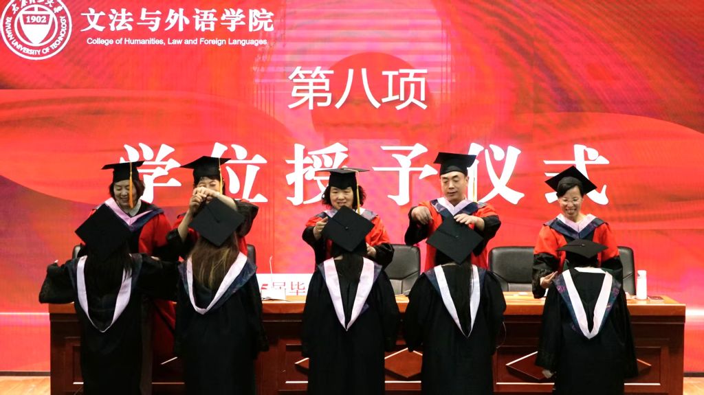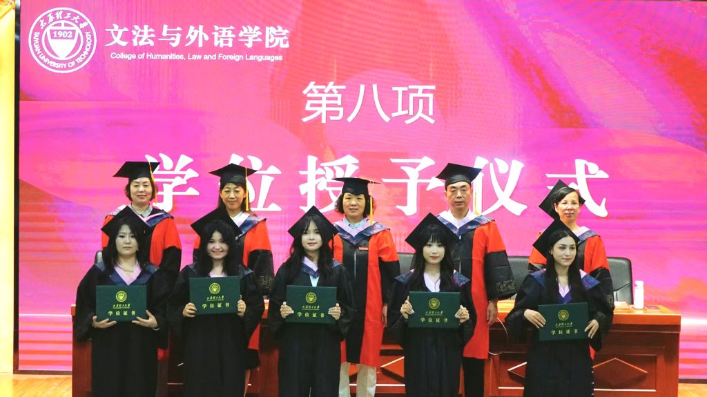 学院教授、分学位评定委员会委员为2025届获得学位的毕业生拨穗正冠、颁发学位证书并合影留念。