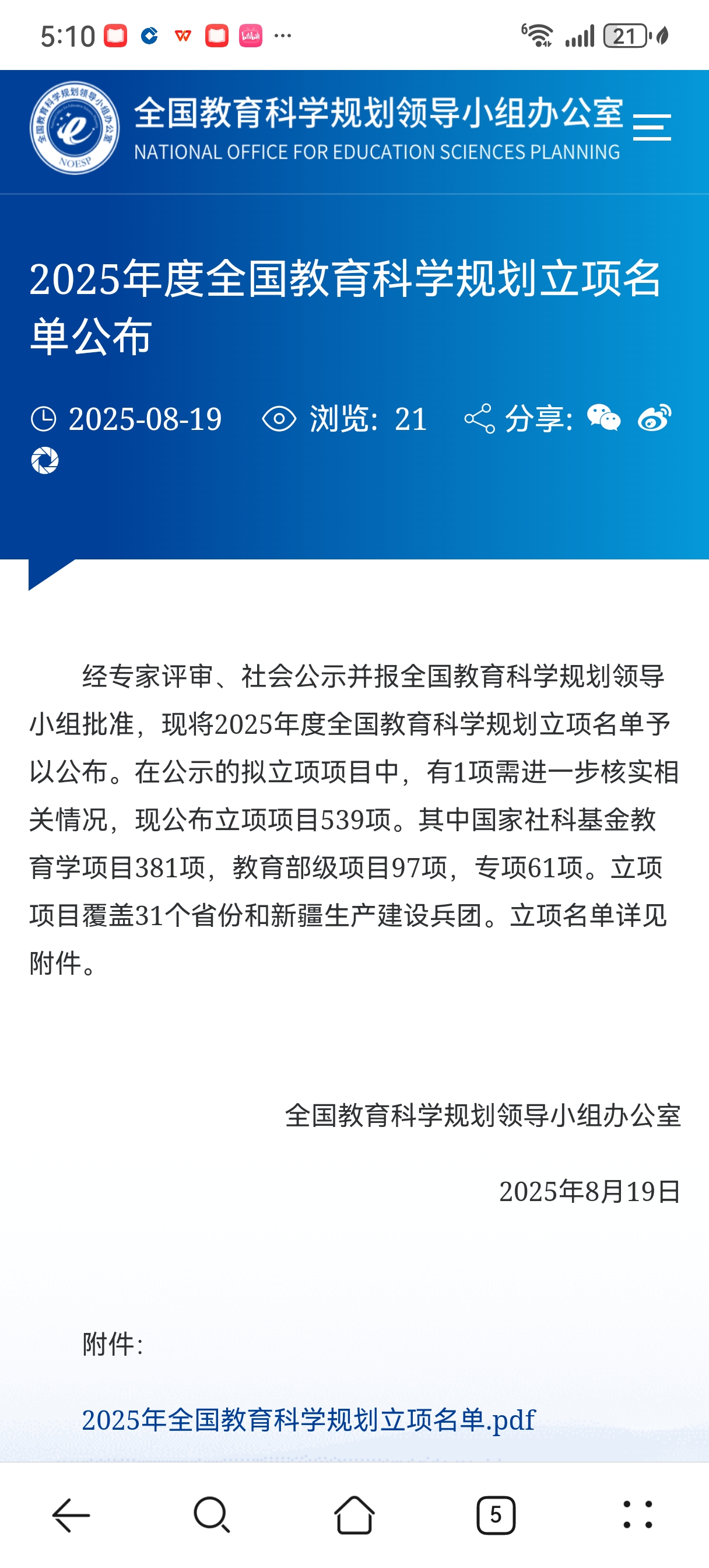 8月19日,全国教育科学规划领导小组办公室公布了2025年度国家社会科学基金教育学立项名单,公司公共管理学科硕士生导师、巩彦斌副教授主持的《人工智能依赖对老员工创造力的影响机制及干预研究》成功获批国家社科基金教育学一般项目。这是PA视讯官方网站获批的首个国家社科基金教育学一般项目,实现了公司该类别项目立项零的突破。