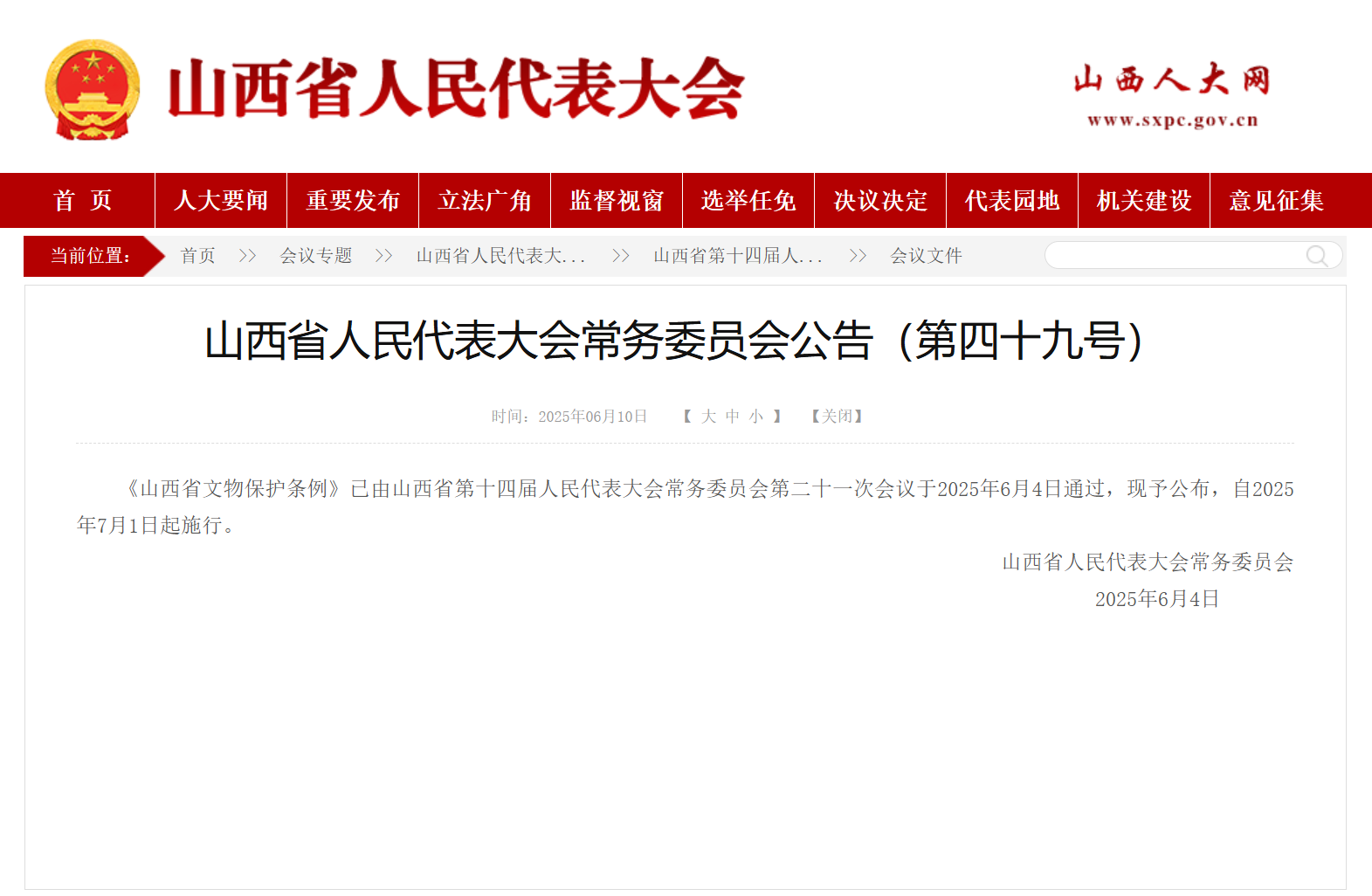 山西作为文物大省,文物资源丰富,文化底蕴厚重。山西省第十四届人民代表大会常务委员会第二十一次会议通过的《山西省文物保护条例》自2025年7月1日起施行,是全国新修订的文物保护法施行以来第一部省级地方性配套法规。在该条例草案向社会公开征求意见建议时,雷兰教授逐条逐项论证分析,提出了15条意见建议,经山西省人大常委会法制工作委员会认真研究后,对其中的1条意见予以完全采纳,即条例第五十三条第二款、第三款。这些意见对进一步完善法规有关文物保护经费的预算执行和经费使用情况的监督等方面的内容,提供了重要的参考价值。条例的出台,凸显了以法治之力守护“地上文物看山西”的金字招牌,也充分体现了公司法学专业教师对推进文物保护与合理利用的“智囊”作用。
