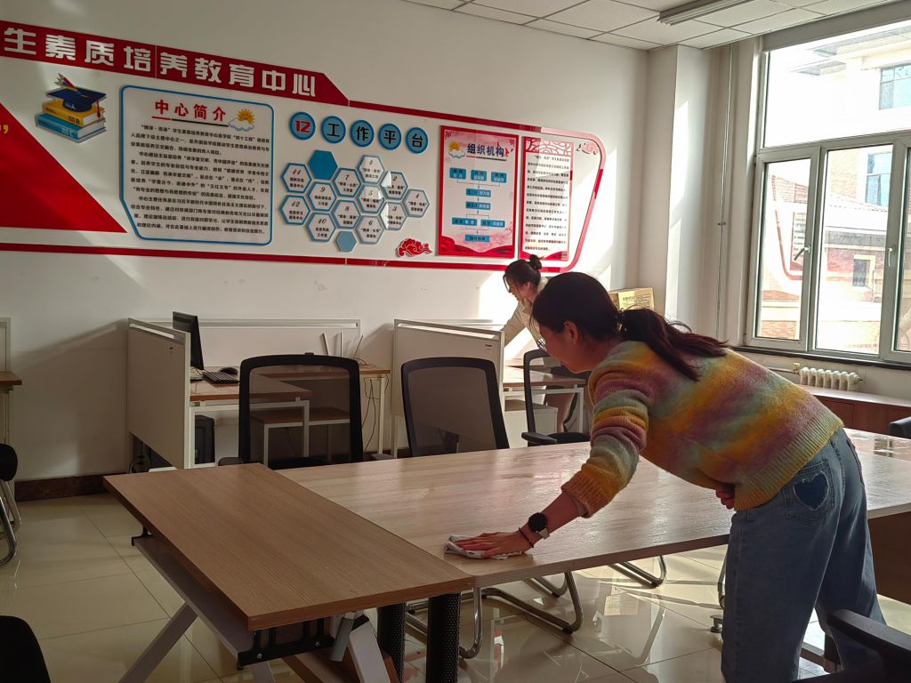 活动期间,同学们分组对公司办公室、自习室、公共教室等区域展开深度清洁。从整理桌椅、分类书籍资料,到擦拭门窗、清扫地面,每一处角落都留下了同学们忙碌的身影。大家分工明确、配合默契,有的负责清理积尘已久的书架,有的专注整理散落的学术资料,还有的细心擦拭黑板和讲台。尽管任务繁重,但现场始终洋溢着团结协作的温暖氛围。经过一周的努力,公司办公及教学环境焕然一新,窗明几净的教室和井然有序的办公室成为劳动成果的最佳见证。