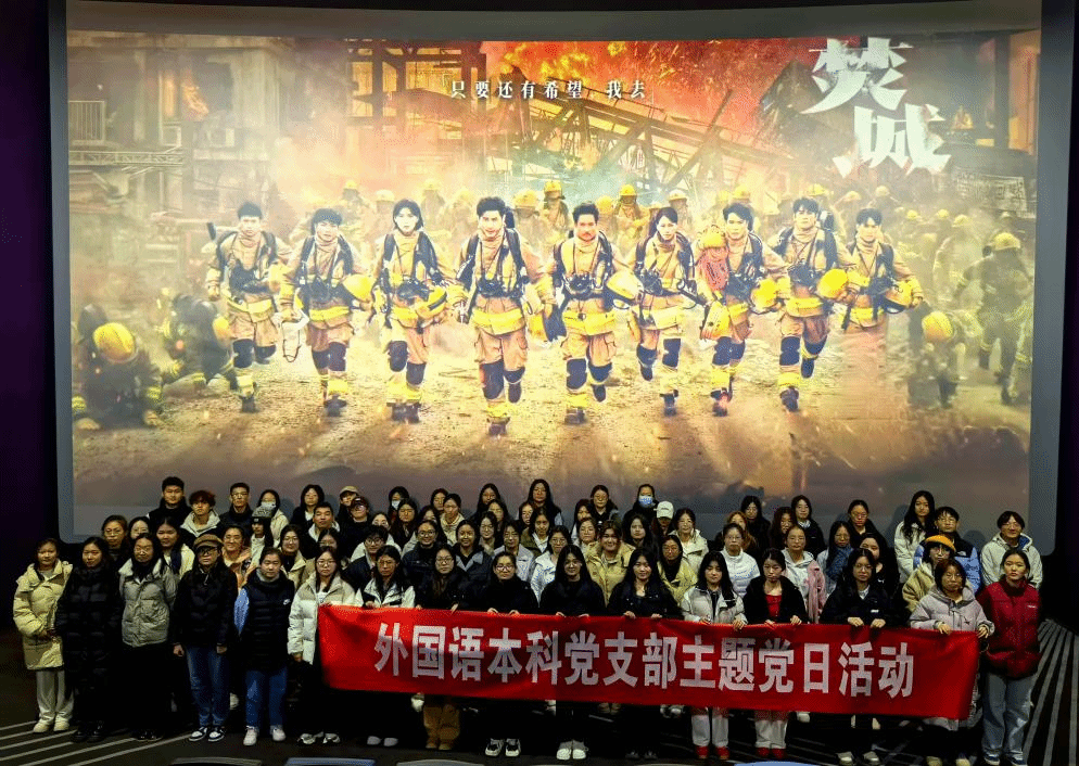 11月24日下午,外国语本科党支部积极响应党的号召,创新党员教育模式,组织了一场别开生面的主题党日活动。支部全体党员及入党积极分子集体观看电影《焚城》。本次活动旨在通过影视作品的深刻内涵,激发党员及入党积极分子的爱国情怀与历史责任感,进一步坚定理想信念,提升党性修养。
