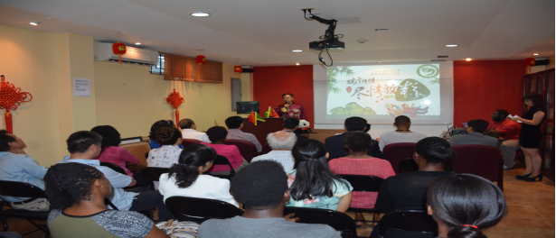两年多来,共组织开展了7次学术讲座,其中1次是2017年9月28日,邀请联合国教科文组织文化研究专家Yuri Peshkov教授所作的题为“丝路申遗:迈向《世界遗产名录》成功提名的第一步”学术专题讲座,座无虚席,反响良好。其余6次均为中方经理所作的学术报告,分别是:(1)2016年11月11日,在语言中心向现代语言文学系师生所作的题为“阅读理解教学中话题词语与语篇解读之间的内在联系”的学术讲座,受到了系主任Dr. Ramsay的称赞。(2)2017年2月1日,在牙买加中华会馆给当地中小员工所作的“春节庆祝活动中的中国文化”讲座。(3)2017年3月8日在牙买加国家警察公司“汉语学习研讨会”上所作的“汉语学习的思路、方法与技巧”。(4)2018年3月23日,给Eltham High中员工所作的题为“古代中国及其灿烂文化”的学术讲座。(5)2018年4月25日,受加勒比地区宗教研究学会邀请给其首届年度大会作了题为“儒家思想对中国多种宗教派别的包容性”的学术讲座。本次宗教学术大会以“诞生、奉献、责任”为主题,在指导加勒比四个国家(牙买加、巴巴多斯、特多、巴哈马)的地区总部举行,从当地时间4月25日开始,至27日结束,总共邀请14位专家主讲,其中儒家思想与道教被安排在第一天的第二场。(6)2018年5月9日,给莫纳大学现代语言文学系教师作了题为“牙买加员工如何在英语语言环境中掌握汉语的语音语调”的学术专题讲座。