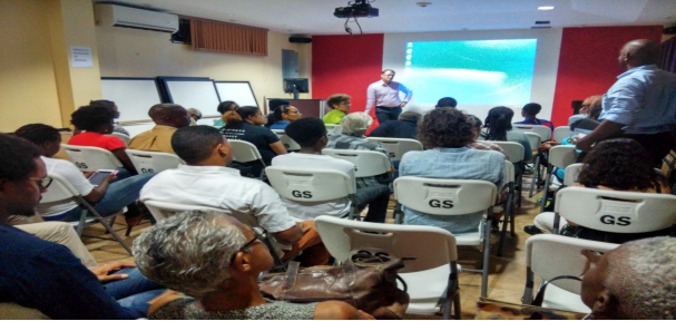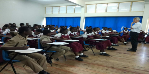 2017年3月8日,中方经理于万锁在牙买加国家警察公司作题为“莫纳孔院及其汉语教学项目”的专题报告。