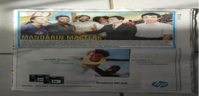 2017年5月29日,孔院中方经理于万锁的照片刊登在《牙买加观察家报》上。